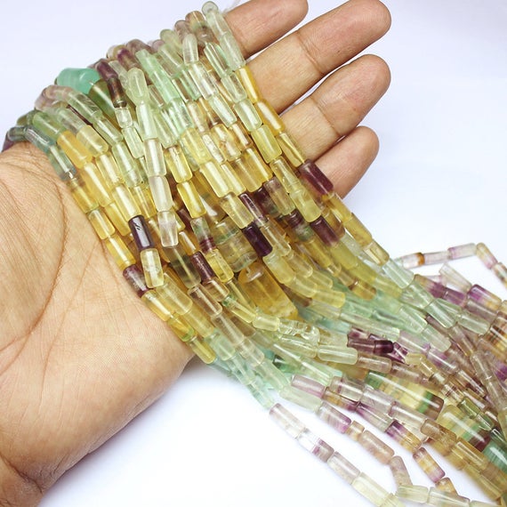1 strand fluorite tube smooth 14'' long strand gemstone beads, jewelry supplies for jewelry making, bulk beads, for meditation jewellery for Reiki Healing gemstone size 10mm to 12mm
