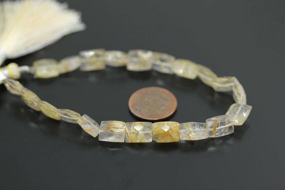 1 strand golden rutile quartz rectangle checker cut faceted 4'' long strand gemstone beads, jewelry supplies for jewelry making, for meditation jewellery for Reiki Healing 8mm to 10mm