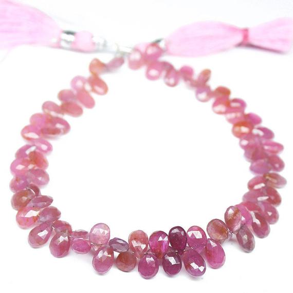 At a Great Price1 strand pink sapphire pear drop faceted 8'' long strand gemstone beads, jewelry supplies for jewelry making, bulk beads, for meditation jewellery for Reiki Healing gemstone 6mm to 8mm