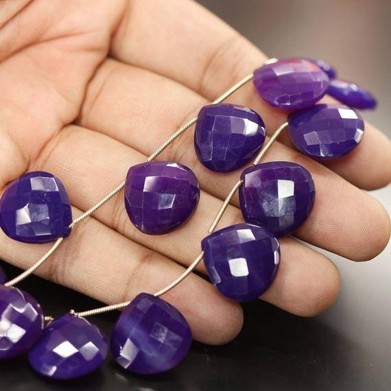 1 strand purple chalcedony heart drop faceted 8'' long strand gemstone beads, jewelry supplies for jewelry making, bulk beads, for meditation jewellery for Reiki Healing gemstone 18mm