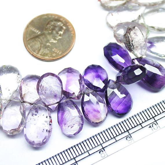 At a Great Price1 strand rutile amethyst quartz pear drop faceted 9'' long strand gemstone beads, jewelry supplies for jewelry making, for meditation jewellery for Reiki Healing gemstone 12mm to 16mm
