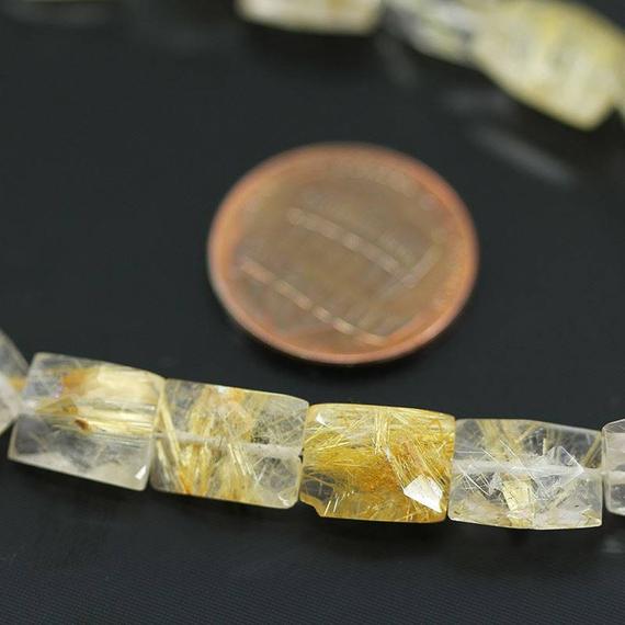 At a Great Price1 strand rutile quartz rectangle chiclet faceted 4'' long strand gemstone beads, jewelry supplies for jewelry making, for meditation jewellery for Reiki Healing gemstone size 8mm to 10mm