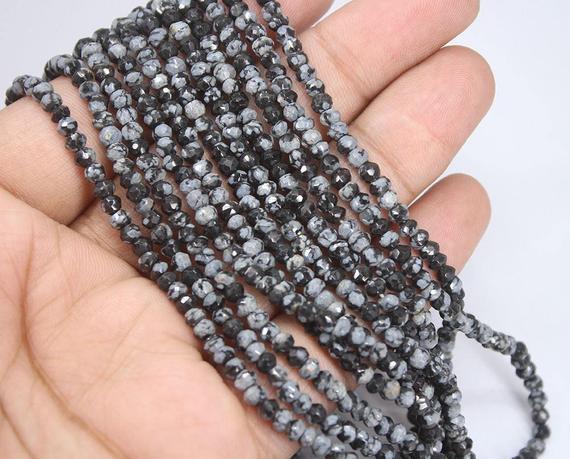 1 strand snowflake obsidian rondelle faceted 13'' long strand gemstone beads, jewelry supplies for jewelry making, bulk beads, for meditation jewellery for Reiki Healing gemstone 4mm