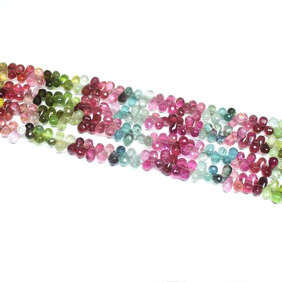 At a Great Price1 strand watermelon tourmaline tear drop faceted 10'' long strand gemstone beads, jewelry supplies for jewelry making, for meditation jewellery for Reiki Healing gemstone size 7mm to 6mm