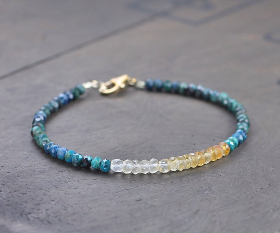At a Great Price24k gold Anniversary Gift 3-3.5mm Multi Colour Citrine & Chrysocolla stacking Bracelet Rondelle, Faceted 18cm for mens, womens, gf, bf and adults.