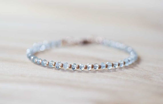 At a Great Price24k gold Anxiety Relief Calming 3.5mm Sky Blue Aquamarine stacking Bracelet Rondelle, Faceted 18cm for mens, womens, gf, bf and adults.