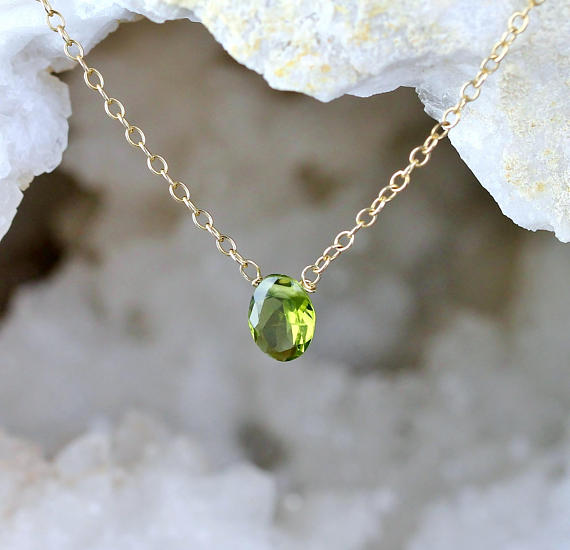 At a Great Price24k gold Blush Jewelry 7-8mm Green Peridot stacking Necklace Coin, Faceted 17 Inch for mens, womens, gf, bf and adults.