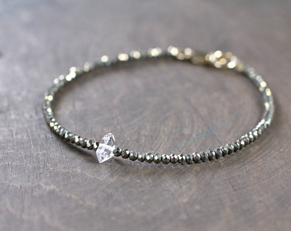 At a Great Price24k gold Bridesmaid Jewelry 2.5mm Multi Colour Pyrite & Herkimer Diamond stacking Bracelet Fancy, Faceted 18cm for mens, womens, gf, bf and adults.