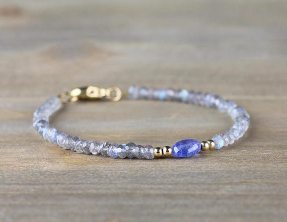 24k gold Grounding 3.5-4mm Multi Colour Labradorite & Tanzanite stacking Bracelet Rondelle, Faceted 18cm for mens, womens, gf, bf and adults.