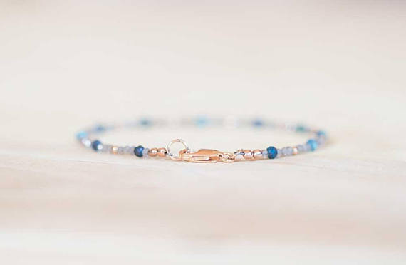 At a Great Price24k gold Handmade Beaded 2mm Multi Colour Labradorite & Chrysocolla stacking Bracelet Round, Smooth 18cm for mens, womens, gf, bf and adults.