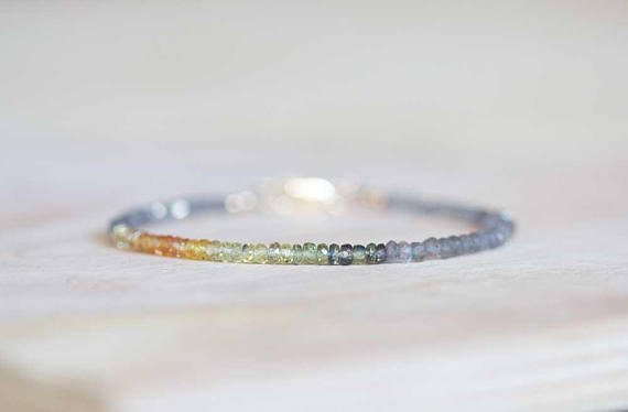 At a Great Price24k gold memorial gift 3-3.5mm Multi Colour Labradorite & Sapphire stacking Bracelet Rondelle , Faceted 18cm for mens, womens, gf, bf and adults.