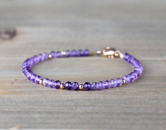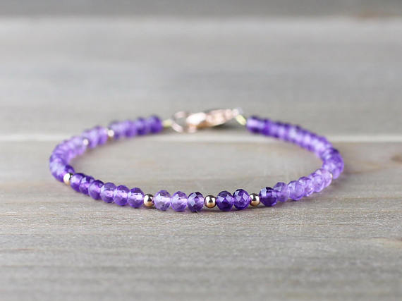24k gold Natural 3.5mm Purple Amethyst stacking Bracelet Round, Faceted 18cm for mens, womens, gf, bf and adults.