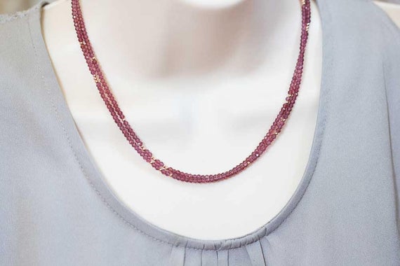 At a Great Price24k gold Personalized Gift 3mm Red Garnet stacking Necklace Rondelle, Faceted 16inch for mens, womens, gf, bf and adults.