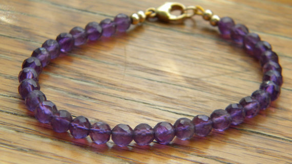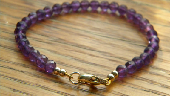 At a Great Price24k gold Plated Anxiety Gemstone 5mm stacking Purple Amethyst Bracelet Rondelle, Faceted 7" for mens, womens, gf, bf & Adult.