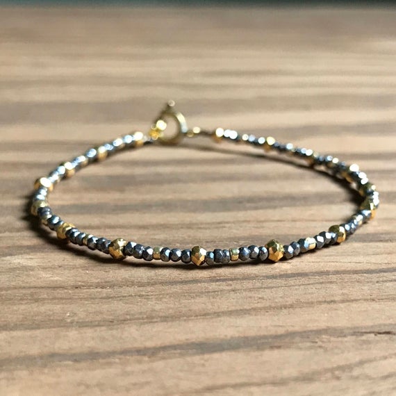 At a Great Price24k gold Plated Anxiety Gemstone Gold Helling 3-5mm stacking Golden golden pyrite Bracelet Rondelle, Faceted 7" for mens, womens, gf, bf & Adult.