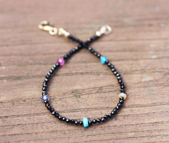 At a Great Price24k gold Plated Anxiety Relief Calming 3-7mm stacking Multi Natural Black Spinel and Multi Gem Bracelet Round & Rondelle, Faceted 7" for mens, womens, gf, bf & Adult.
