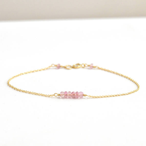 At a Great Price24k gold Plated Anxiety Relief Calming 3x2mm stacking Pink Pink Tourmaline Bracelet Rondelle, Smooth 7" for mens, womens, gf, bf & Adult.