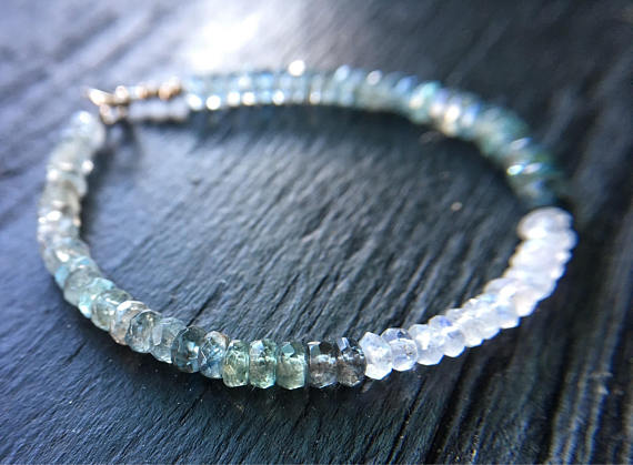At a Great Price24k gold Plated Anxiety Relief Calming Gold Helling 3.5-4mm stacking Multi Moss Aquamarine Moonstone Bracelet Rondelle, Faceted 7" for mens, womens, gf, bf & Adult.