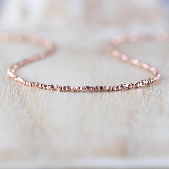 At a Great Price24k gold Plated Artisan Loose 2mm stacking Golden 24k Rose Gold Necklace Fancy, Faceted 16" for mens, womens, gf, bf & Adult.
