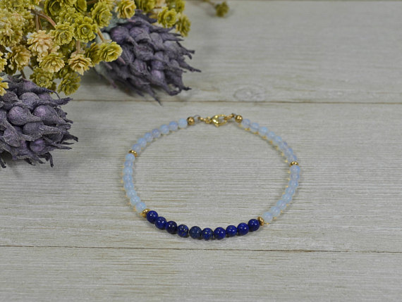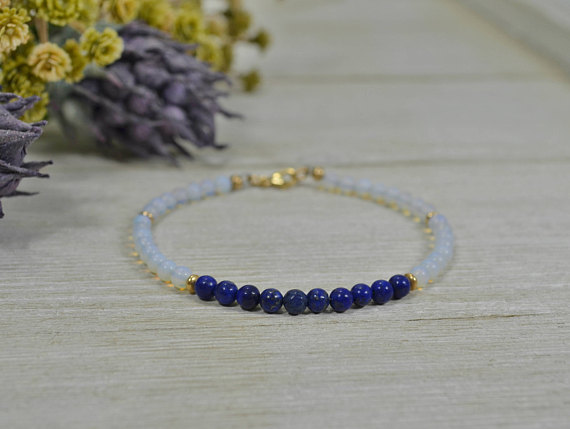 At a Great Price24k gold Plated Blush Jewelry,gold helling 4 mm Stracking Blue Lapis Lazuli Dark Royal Blue Bracelet Round, Smooth 7" for mens, womens, GF, BF, Adults.