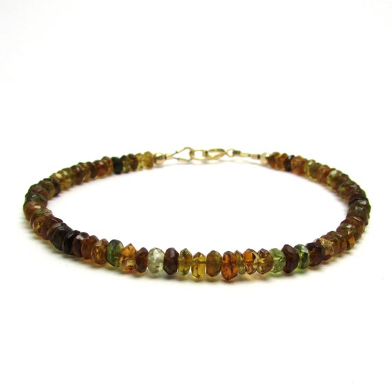 24k gold Plated Bridesmaid Jewelry 3.5 mm Stracking Multi Petro tourmaline Bracelet Rondelle, Faceted 7" for mens, womens, GF, BF, Adults.
