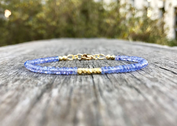 At a Great Price24k gold Plated Bridesmaid Jewelry Gold Helling 2.5-3mm stacking Blue Tanzanite Bracelet Rondelle, Smooth 7" for mens, womens, gf, bf & Adult.