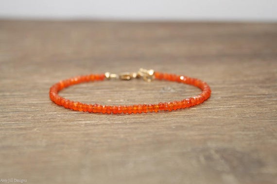 At a Great Price24k gold Plated Bridesmaid Jewelry Gold Helling 3mm stacking Orange Carnelian Bracelet Rondelle, Faceted 7" for mens, womens, gf, bf & Adult.
