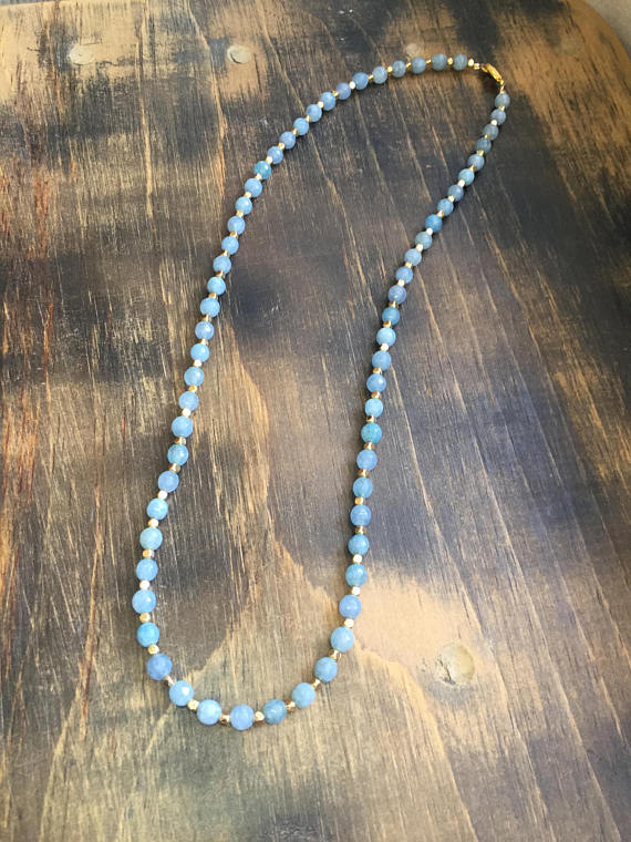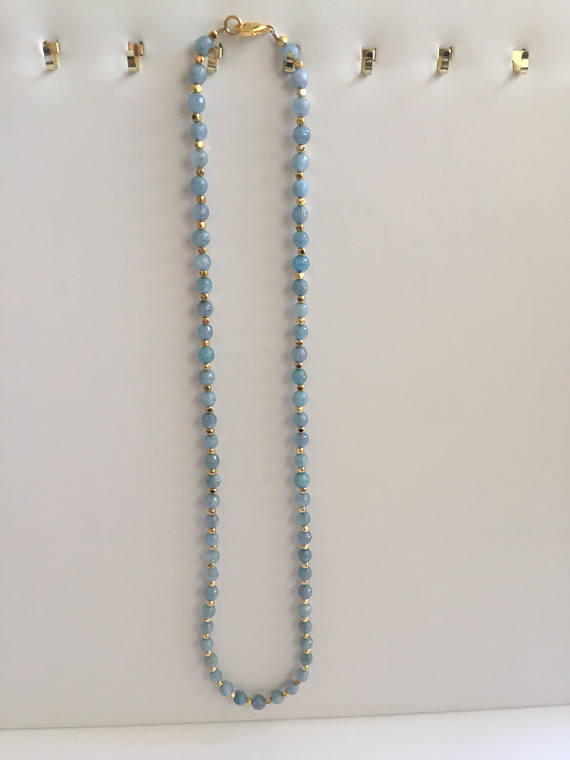 At a Great Price24k gold Plated chakras simple Gold Helling 2-5mm stacking Aqua Jade Necklace Round, Smooth 22" for mens, womens, gf, bf & Adult.