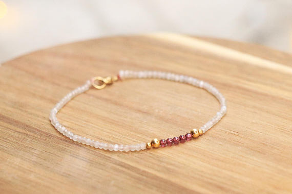 At a Great Price24k gold Plated chakras simple Gold Helling 3-5mm stacking Multi Rhodolite Garnet, moonstone Bracelet Round, Faceted 7" for mens, womens, gf, bf & Adult.