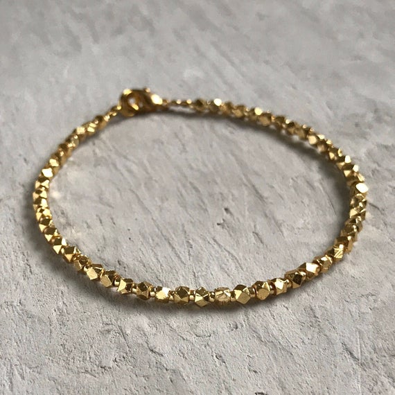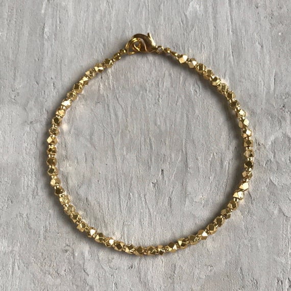 At a Great Price24k gold Plated chakras simple Gold Helling 3mm stacking Golden 24k gold hill tribe Bracelet Fancy, Faceted 7" for mens, womens, gf, bf & Adult.