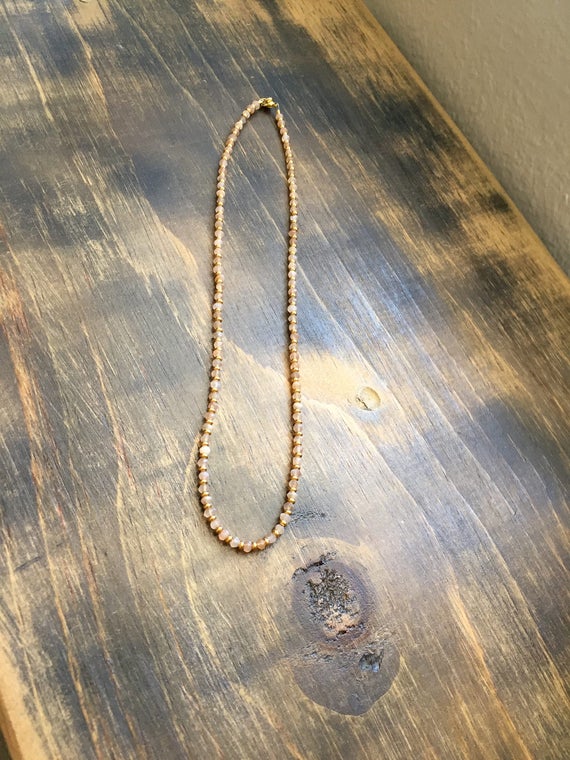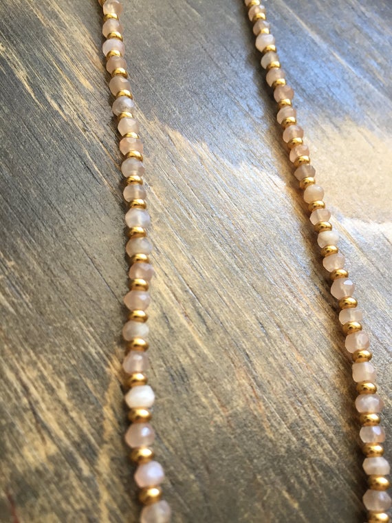 At a Great Price24k gold Plated Dainty Slave Loose 3-4mm stacking Peach Peach Moonstone Necklace Rondelle, Faceted 17" for mens, womens, gf, bf & Adult.