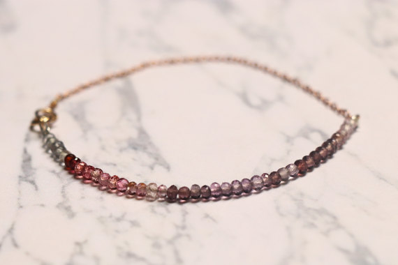 At a Great Price24k gold Plated Empath Protection 2x1.5mm stacking Multi Spinel Bracelet Round, Faceted 7" for mens, womens, gf, bf & Adult.