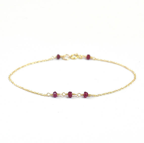 At a Great Price24k gold Plated Galaxy Jewelry 3mm stacking Red Tiny Ruby Bracelet Rondelle, Faceted 7" for mens, womens, gf, bf & Adult.