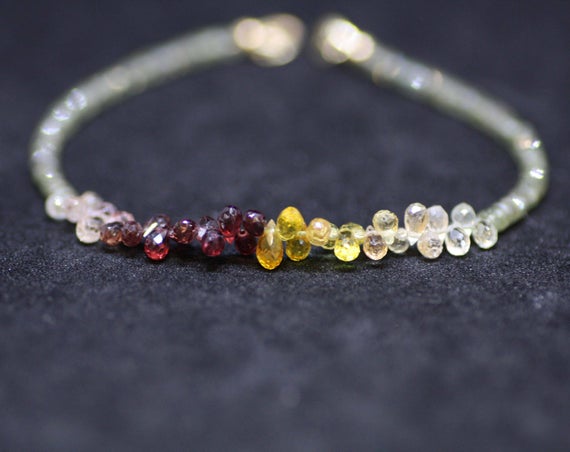 24k gold Plated good luck gift Gold Helling 4.5mm stacking Multi Sapphire Bracelet Drop & Rondelle, Faceted 7" for mens, womens, gf, bf & Adult.