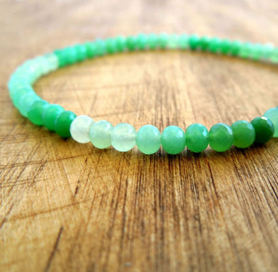 At a Great Price24k gold Plated GRounding 3-4 mm Stracking green Chrysoprase Bracelet Rondelle, Faceted 7" for mens, womens, GF, BF, Adults.