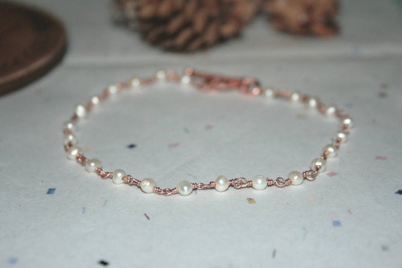 24k gold Plated Grounding 3-4mm stacking White Rose Gold Pearl Bracelet Round, Smooth 7" for mens, womens.