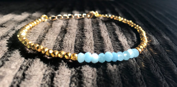 At a Great Price24k gold Plated Handmade Beaded Gold Helling 4-5mm stacking Aqua Aquamarine and Golden Pyrite Bracelet Rondelle, Faceted 7" for mens, womens, gf, bf & Adult.