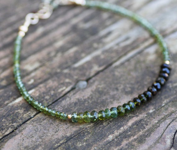 At a Great Price24k gold Plated Jewelry Energy Gold Helling 2.5-4mm stacking Green Green Tourmaline Bracelet Rondelle, Faceted 7" for mens, womens, gf, bf & Adult.