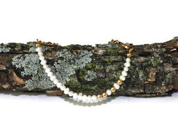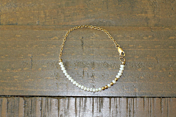 At a Great Price24k gold Plated Jewelry Energy Gold Helling 3-4mm stacking White Pearl Bracelet Rondelle, Faceted 7" for mens, womens, gf, bf & Adult.
