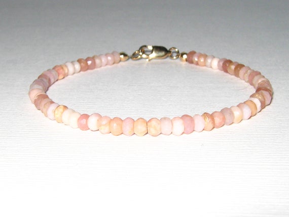 At a Great Price24k gold Plated love beach youth 2.5mm stacking Pink Pink Opal Bracelet Rondelle, Faceted 7" for mens, womens, gf, bf & Adult.