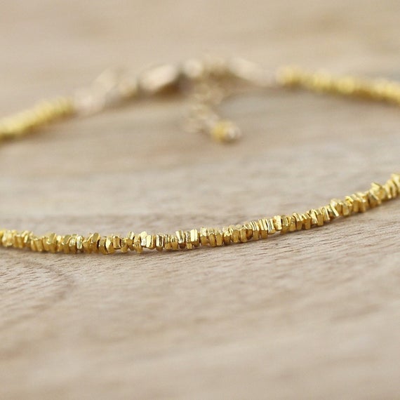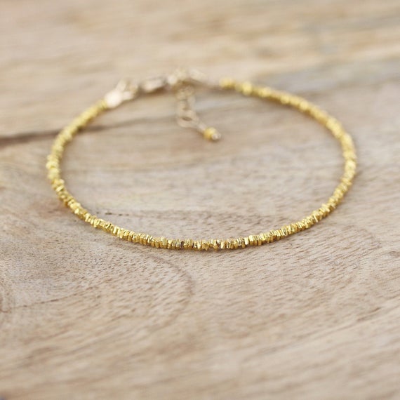 At a Great Price24k gold Plated Natural 2mm stacking Golden Gold Vermeil Bracelet Square, Faceted 7" for mens, womens, gf, bf & Adult.