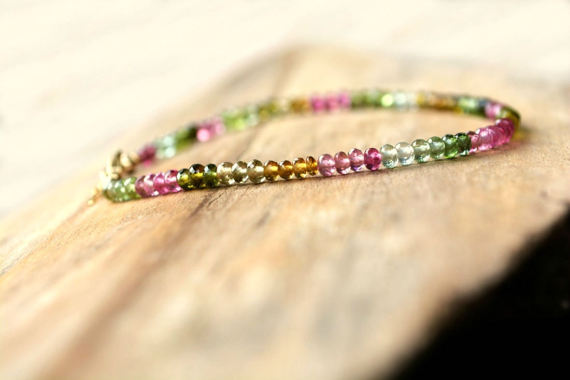 At a Great Price24k gold Plated Personalized Gift 2x3 mm Stracking Multi Pink Brown Green Tourmaline Bracelet Rondelle, Faceted 7" for mens, womens, GF, BF, Adults.