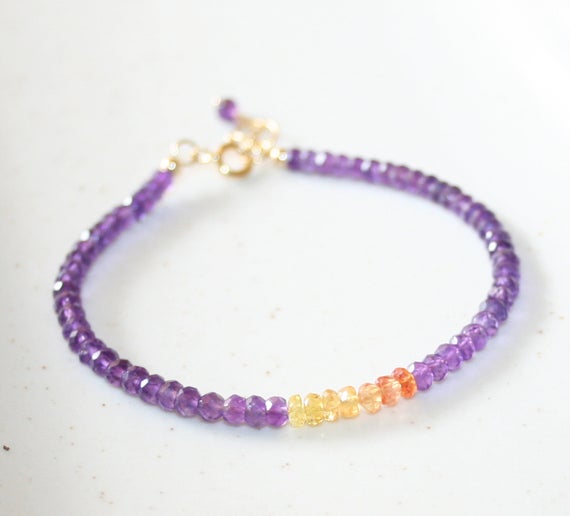 At a Great Price24k gold Plated Personalized Gift 3.5-4mm stacking Multi Amethyst and Sapphire Bracelet Rondelle, Faceted 7" for mens, womens.