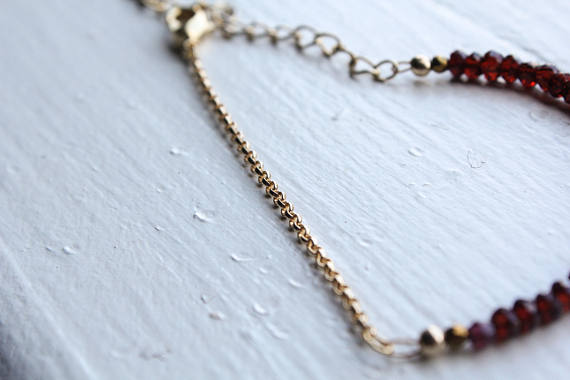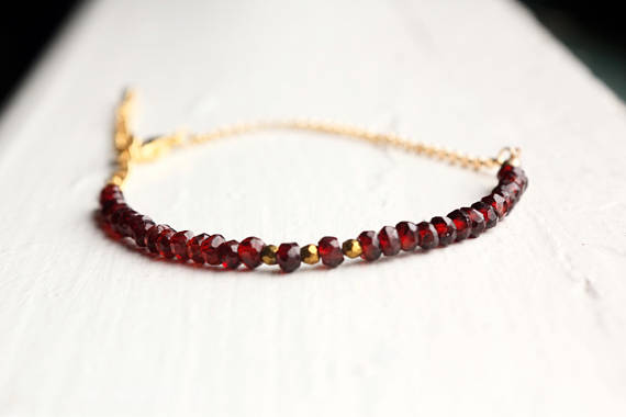 At a Great Price24k gold Plated Positive Energy Gold helling 3-4mm stacking Red Garnet Bracelet Rondelle, Faceted 7" for mens, womens, gf, bf & Adult.