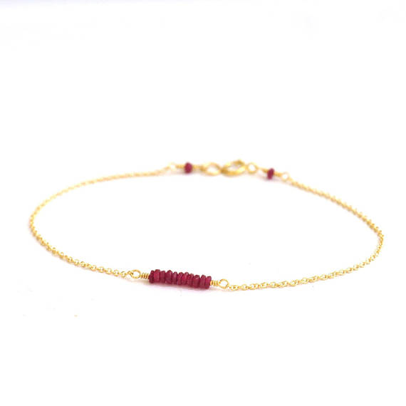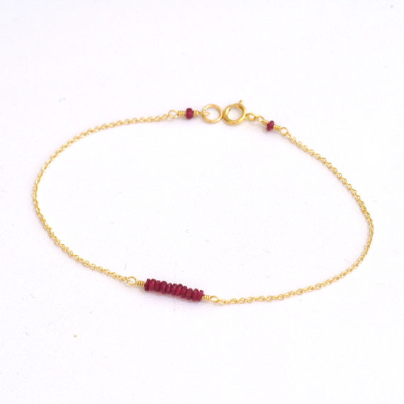 At a Great Price24k gold Plated Rock Gift 1x2mm stacking Red Ruby Bracelet Rondelle, Faceted 7" for mens, womens, gf, bf & Adult.