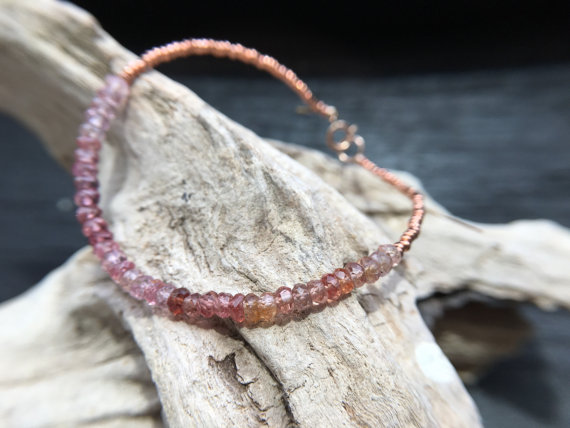 At a Great Price24k gold Plated Super sale Gold Helling 2.5-3mm stacking Pink Ombre pink salmon Spinel Bracelet Rondelle, Faceted 7" for mens, womens, gf, bf & Adult.