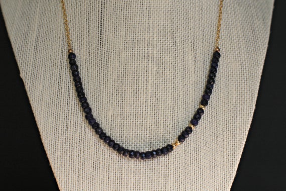 At a Great Price24k gold Plated top quality Gold helling 3-4mm stacking Blue Blue Sapphire Necklace Rondelle, Faceted 16" for mens, womens, gf, bf & Adult.