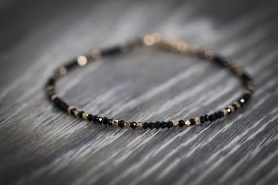 At a Great Price24k gold Plated Unique Wedding Gift 2.5mm stacking Black Black Spinel Bracelet Round, Smooth 7" for mens, womens.