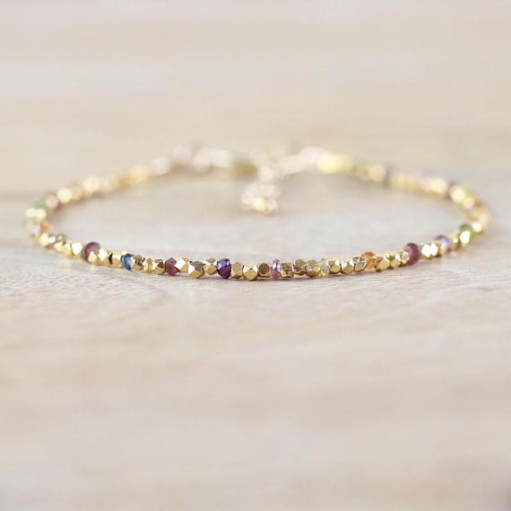 At a Great Price24k gold Plated Unique Wedding Gift Gold Helling 2mm stacking Multi Tundra Sapphire Bracelet Rondelle, Faceted 7" for mens, womens, gf, bf & Adult.