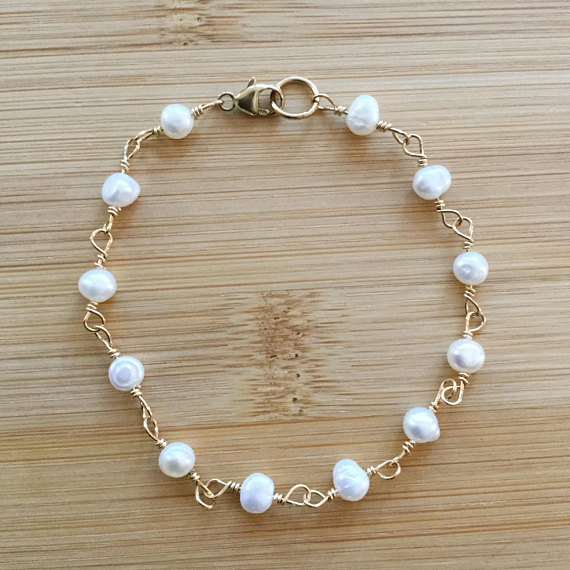 24k gold Plated Wholesale 4.5mm stacking White Freshwater White Pearl Bracelet Round, Faceted 7" for mens, womens.